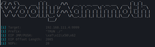 As mentioned, I built a basic overflow (buffer offset + EIP + NOPS + shellcode) feature in to WoollyMammoth.