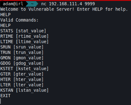 Next, we’ll perform basic enumeration to identify the server and its functionality. The VulnServer program is a TCP server that listens for commands, so we can use a tool like Netcat to connect to it.