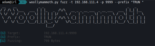 We can continue to increase the buffer size to 200, 300, and so on, until we eventually crash the server. This is a tedious process and not very efficient to do manually, especially if the buffer size is large. I’ll save some time and avoid going through some Python examples and state that I wrote a quick rudimentary fuzzer for these sorts of things, which I’ll use going forward in this article.
