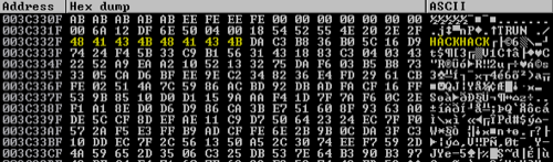 However, this string was not our egg, as only a single 4 byte string was identifiedThe egghunter then continues looping through to discover another instance, which looks more promising