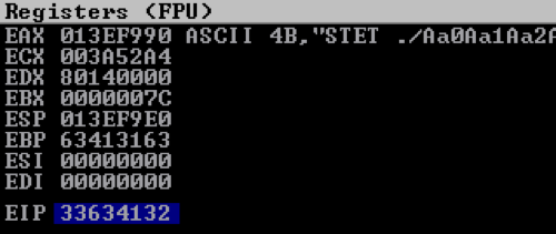 What we’re trying to do here is to identify the position in our byte string where the EIP is overwritten so we can look to control the execution flow of the program.